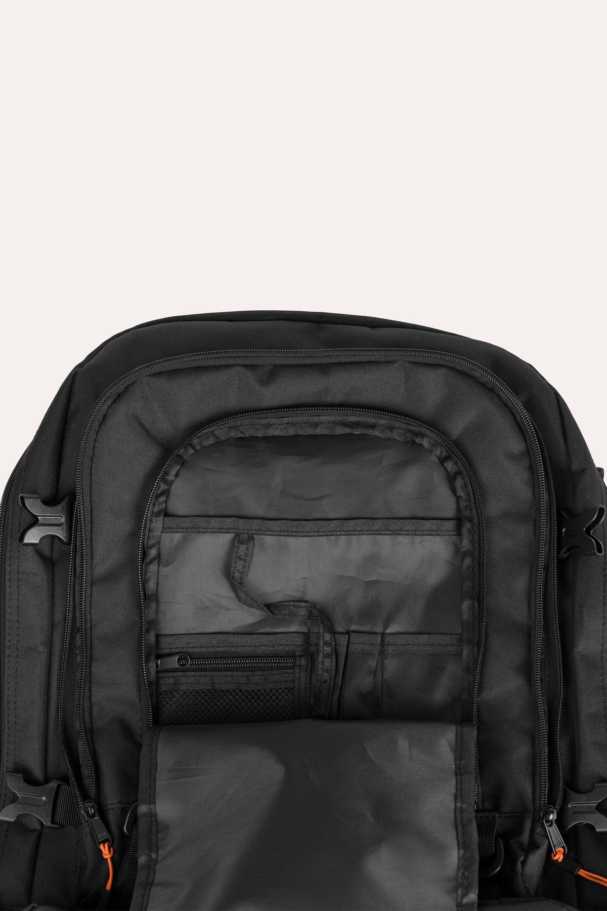 Featuring a fully expandable design, the backpack adapts to your needs — designed for carrying extra gear when required. The main zipper compartment provides ample space for your essentials, complemented by a padded internal laptop compartment to keep your tech safe. A top zipper pocket, front zipper pocket, and dual side zipper pockets offer smart organization for smaller items, accessories, and personal belongings.